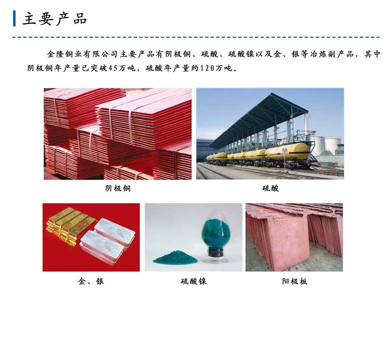 主要产品Q?/strong>金隆铜业有限公司主要产品有阴极铜、硫酸、硫酔R以及(qing)金、银{冶炼副产品Q其?..   >>详细信息